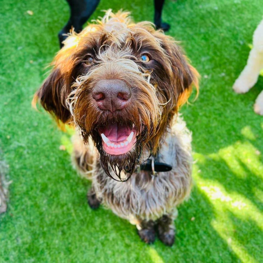We always love it when new dogs come into daycare! This month we welcomed two new pups, and it didn’t take long for them to settle down and make friends. Bear came to us for a trial and he did really well. We’re looking forward to seeing him again! We also welcomed Nuala to the gang and she had a great day. She’s a German Wirehaired Pointer and was so sweet and playful!